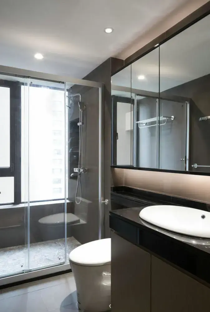 卫生间 现代舒适的卫生间布局,浴室镜后方是收纳柜,把卫浴用品收藏在里面,实用又方便。