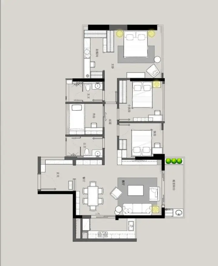 130㎡现代中式,大理石质感,现代又高档!这套130平米的房子,动静分区合理舒适,在舒适的户型基础,选择现代舒适的空间基础,置入简单儒雅的禅意中式元素,给人以稳重、舒适又端庄的氛围感。图·赏picture 平面布置图